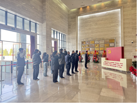 在庄严肃穆的纪念馆里,全体党员在党总支副书记乔夼的带领下,面向党旗庄严宣誓,重温入党誓词。铿锵誓言回荡在红色热土上,表达了党员干部不忘初心、砥砺前行的坚定信念。
