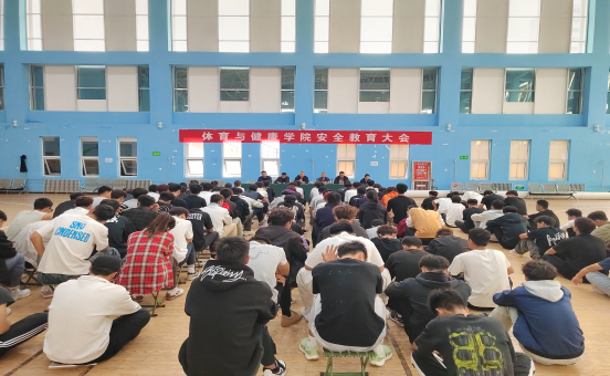 9月30日下午,体育与健康学院在南苑校区体育馆召开学生安全教育大会。学院党总支书记刘宏生,副书记乔夼,副院长邵语平,辅导员、班主任及全体学生参加会议。学院院长李玉辉主持会议。